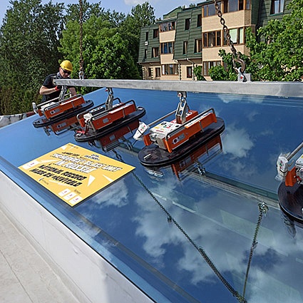 В компании АРЛИФТ есть решения, которые помогут профессионально провести монтаж тяжелых стекол весом до 2500 кг.