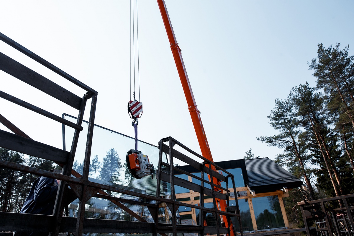 Говоря про монтаж конструкций из стекла нельзя не упомянуть еще один современный способ — монтаж, в котором используется мини-кран и присоска для монтажа стекла. Такое оборудование позволяет производить монтаж или подъем грузов в стесненных условиях как снаружи, так и внутри помещения.