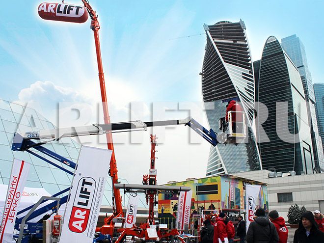 Протестировав вышку, персонал компании с удовольствием предоставил посетителям выставки возможность абсолютно безопасно подняться на высоту 22 метра и осмотреть всю территорию Экспоцентра с высоты птичьего полета.