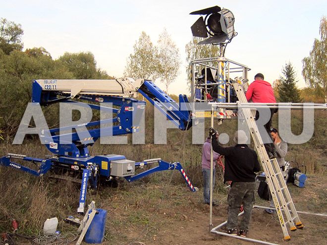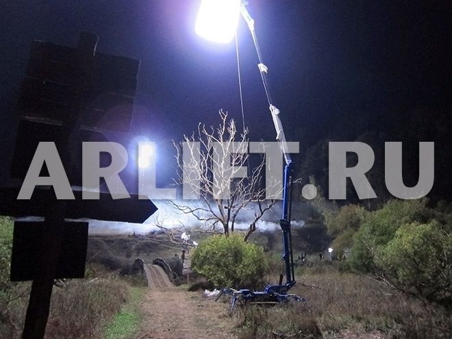 Спайдер-вышка BLUELIFT C22 работала на площадке кинокомпании «МАРС ФИЛЬМ» в Калужской области. На корзине спайдер-вышки был закреплен световой куб.