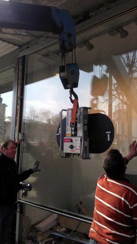 Работы велись в центре города, использование данного оборудования позволило осуществить быстрый, безопасный и качественный монтаж стеклопакета весом 260 кг.