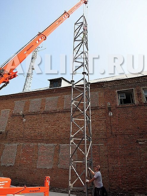 Монтаж громоотвода с помощью мини-крана JEKKO SPX1040