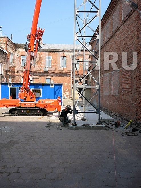 В середине июля, самый крупный и мощный представитель семейства JEKKO – мини-кран SPX1040, произвел работы по монтажу громоотвода весом 1,3 тонны, на внутренней территории двора в г.Тула.