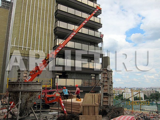 С помощью многофункционального мини-крана JEKKO SPD360 на 13-ом этаже высотного комплекса была смонтирована опалубка.