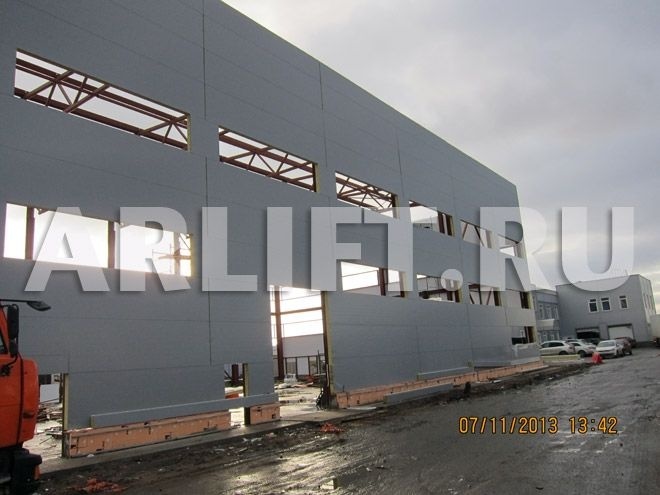 Ранее для монтажа стеновых панелей монтажная компания использовала струбцины, но устаревшая конструкция не смогла обеспечить желаемый результат. Начали искать альтернативные решения и остановились на современной вакуумной технике компании «Арлифт». Перед подъемником стояла задача смонтировать кровельные сэндвич-панели длиной до 6,7 м, весом 210 кг. Cladboy 4 в комплектации «кровля» легко справился с этой задачей, показав отличные результаты. Монтажная организация осталась довольна и на месте приняла решение об аренде оборудования.