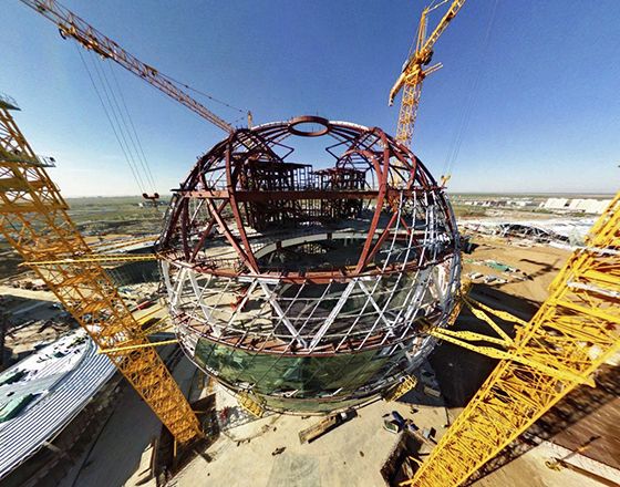 Остекление гигантского шара «Экспо 2017» в Астане мини-кранами JEKKO