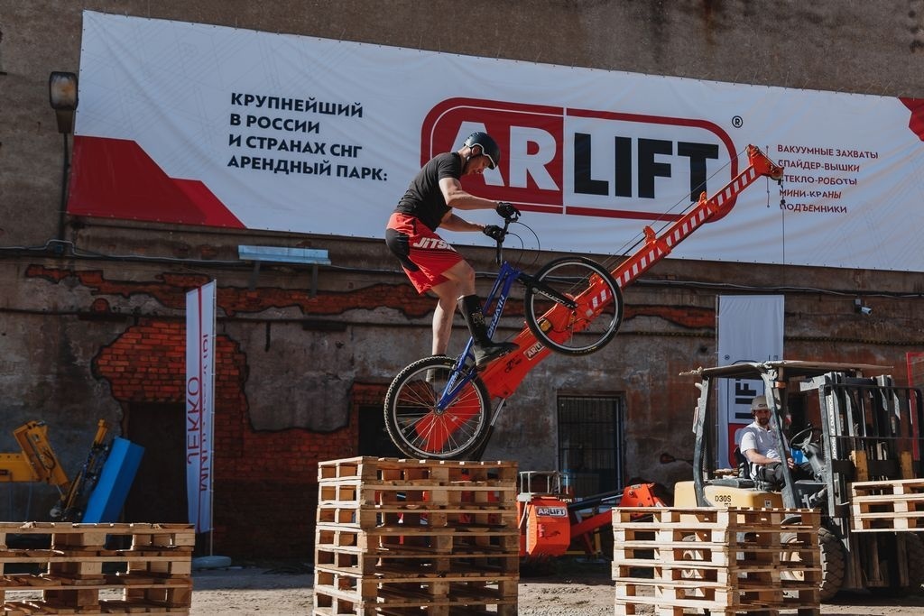 Подняться на высоту 12 метров на самой компактной спайдер-вышке в линейке ARLIFT, попробовать управлять краном или стеклороботом, почувствовать адреналин, когда над вами прыгает экстремал-велосипедист – все это OPENDAYARLIFT 2017.
