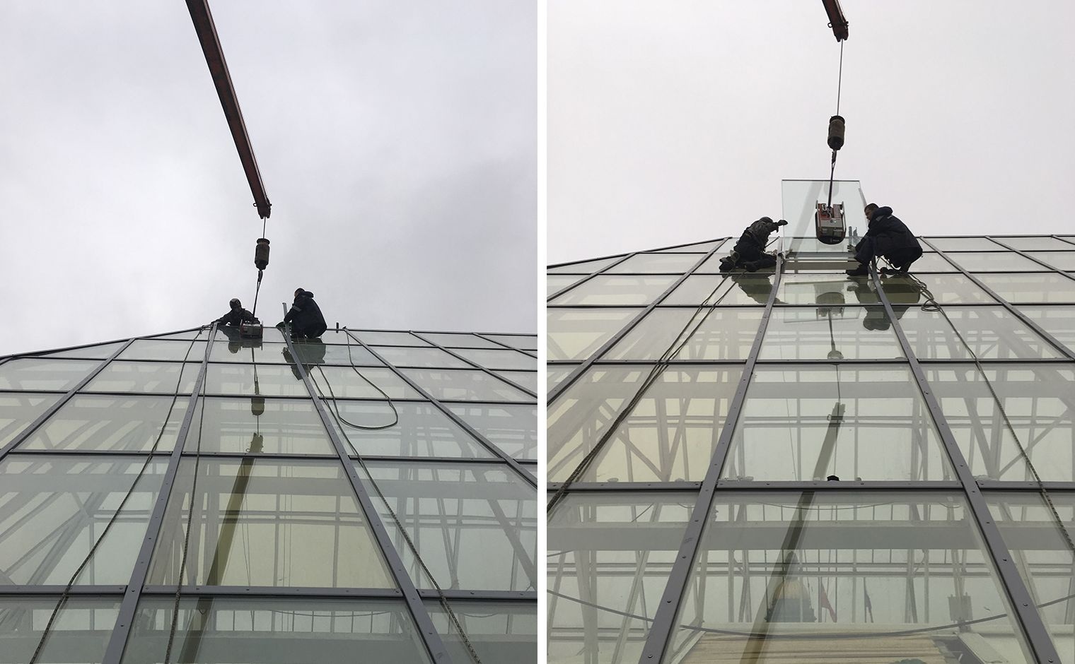 Стекла монтировались небольшие: 1,5 х 2 метра весом 230 килограммов. Монтаж занял всего лишь два дня.