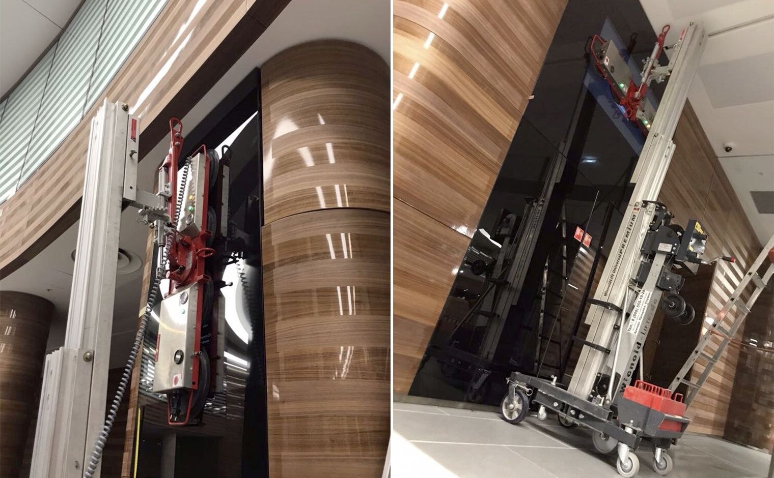 Компания АРЛИФТ принимала участие на разных этапах строительства. Но сейчас, когда здание уже построено, оборудованием АРЛИФТ снова были выполнены задачи по остеклению. На этот раз требовалось произвести монтаж стекла для телевизионных панелей внутри бизнес-центра.