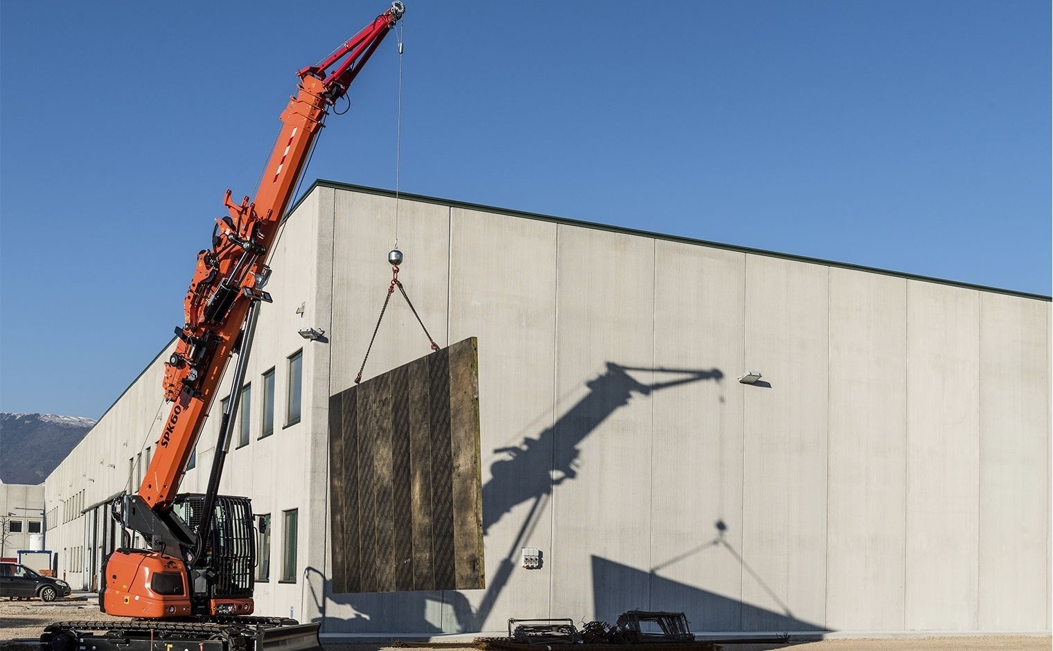 Благодаря инновационному программному обеспечению, мини-кран может работать на любой строительной площадке, на любом типе местности и при любом наклоне. «Вездеходность» крана достигается за счет больших резиновых гусениц, а также благодаря возможности использования отвала, выравнивающего поверхность строительной площадки для беспрепятственного перемещения по ней крана. Мини-кран SPK60 способен поднимать грузы весом до 3 тонн в режиме Pick&Carry и до 6 тонн в статическом режиме при максимальной высоте подъёма 26,7 метров.