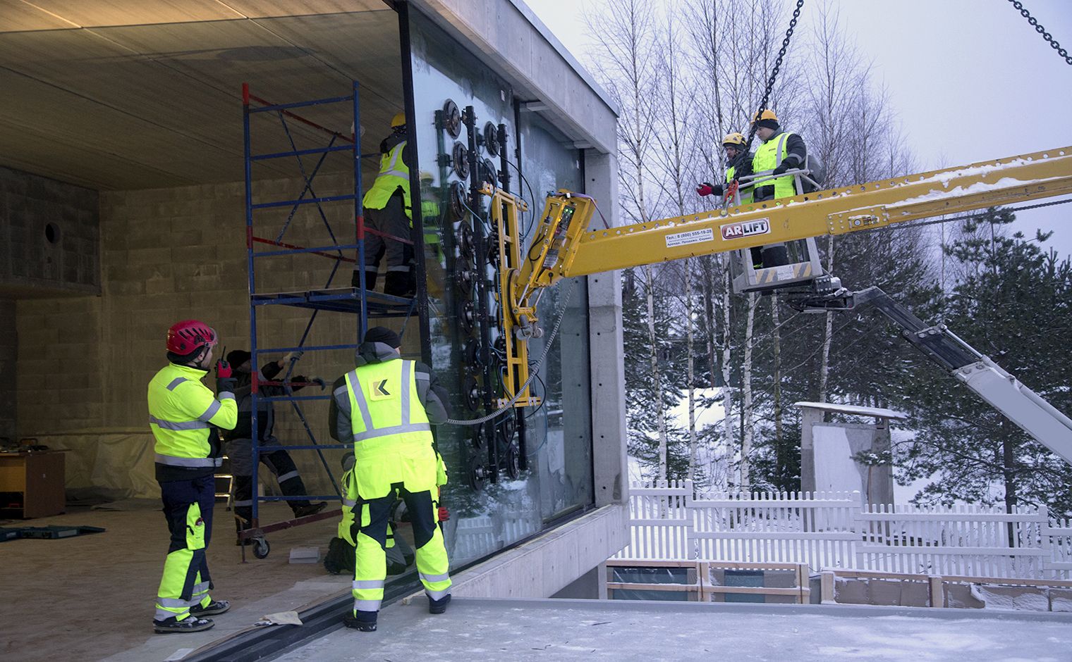 Монтаж стекла с помощью техники ARLIFT специалистами строительной компании KIVITALO был выполнен всего за два дня.