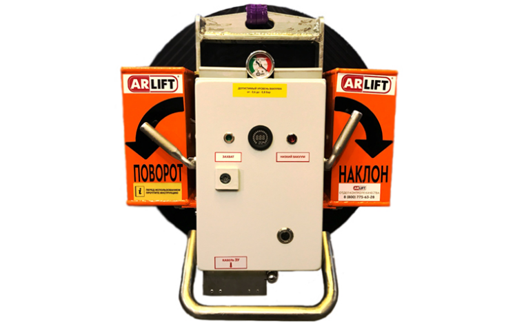 ARLIFTER GS-350 самый компактный вакуумный захват, его вес всего 35 кг, а размеры 500 х 500 х 200 мм. Он способен поднимать стекло и сэндвич-панели весом до 350 кг.