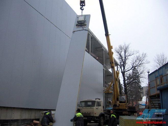 Наши объекты - Вертикальный монтаж стеновых сэндвич-панелей до 12 м