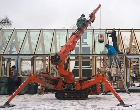 Мини-краном SPX 360 и вакуумным захватом ARLIFTER GS-500 в течение одной недели были смонтированы новогодние ярмарочные домики на Пушкинской площади в городе Москва.