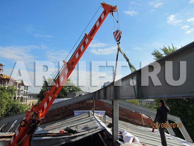 Наши объекты - Подъем и перемещение грузов мини-краном: монтаж на объекте в Москве