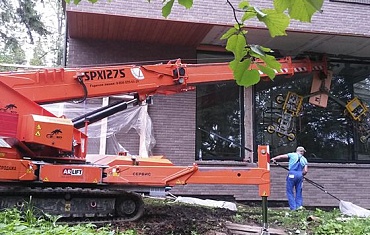 Монтаж металлоконструкций с помощью мини-крана SPX527