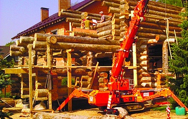 Мини-краном JEKKO производился подъем бревен.