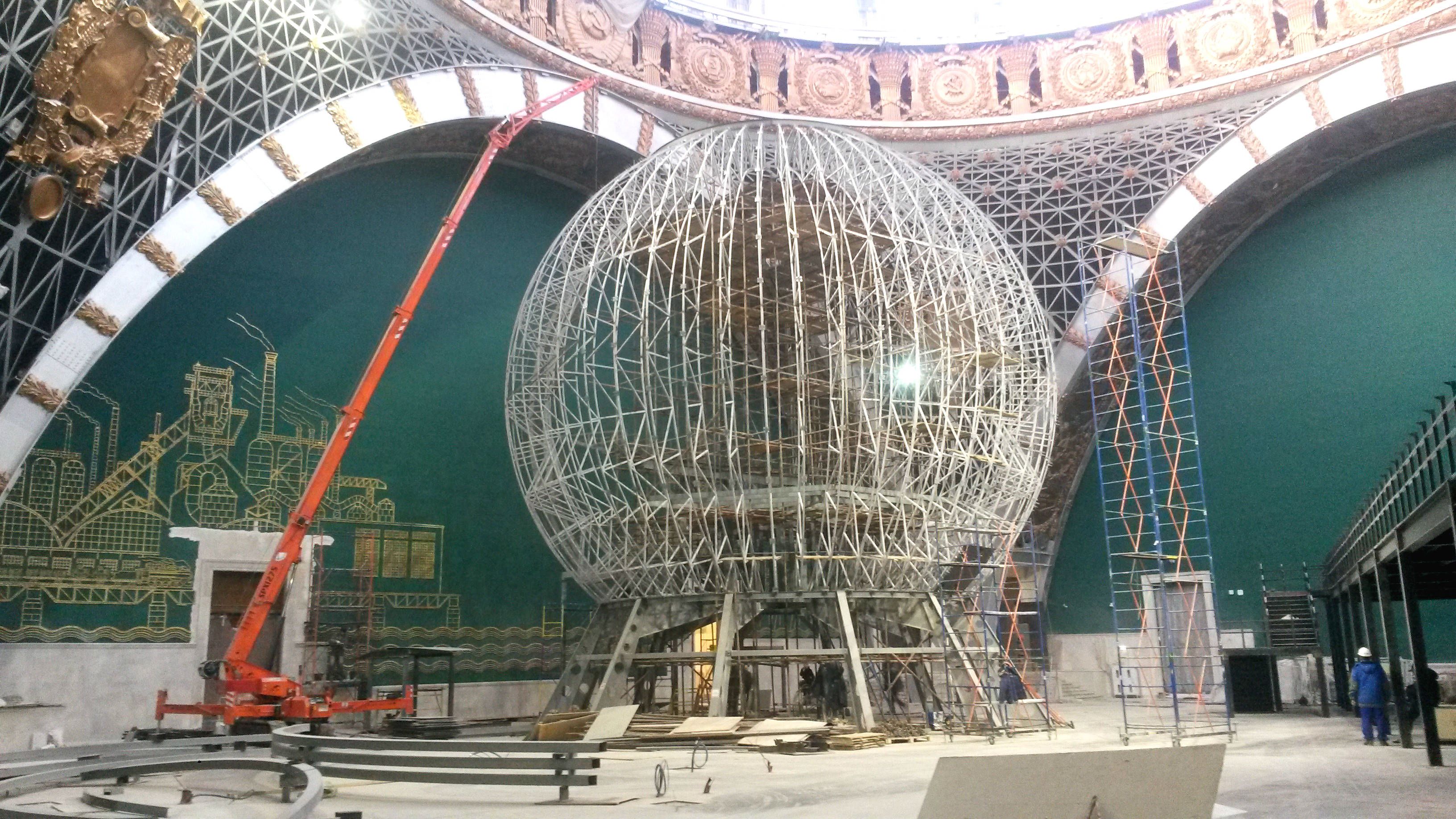 Наши объекты - Монтаж ракеты восток и мультимедийного шара в комплексе «Космос» ВДНХ в Москве