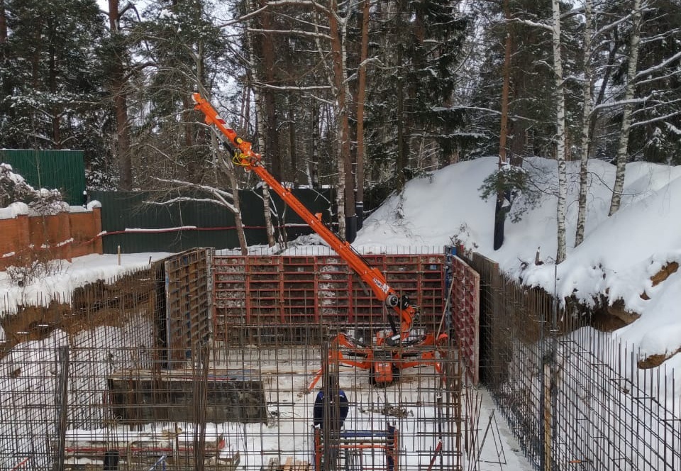 Наши объекты - Монтаж опалубки с помощью мини-крана SPD360 с гидравлическим гуськом