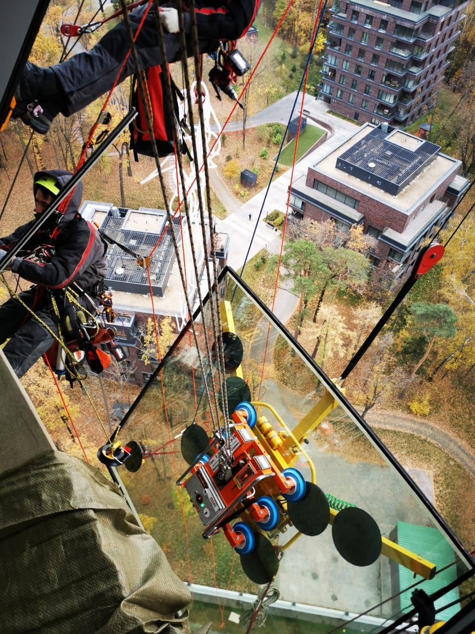 А стропы и резервный накопитель вакуума гарантирует максимальную безопасность работ, что является важным фактором, особенно, когда работы проводятся на высоте.