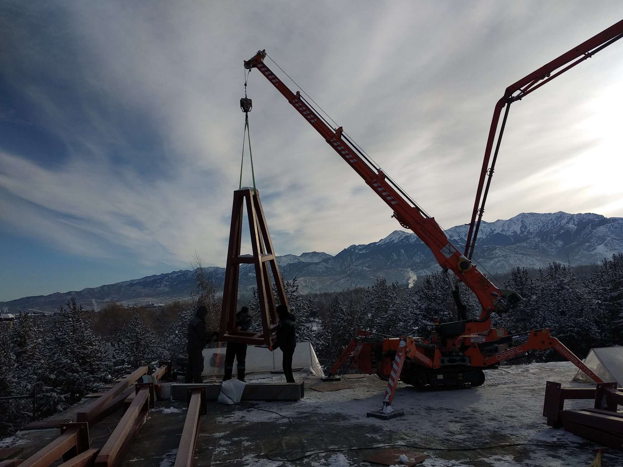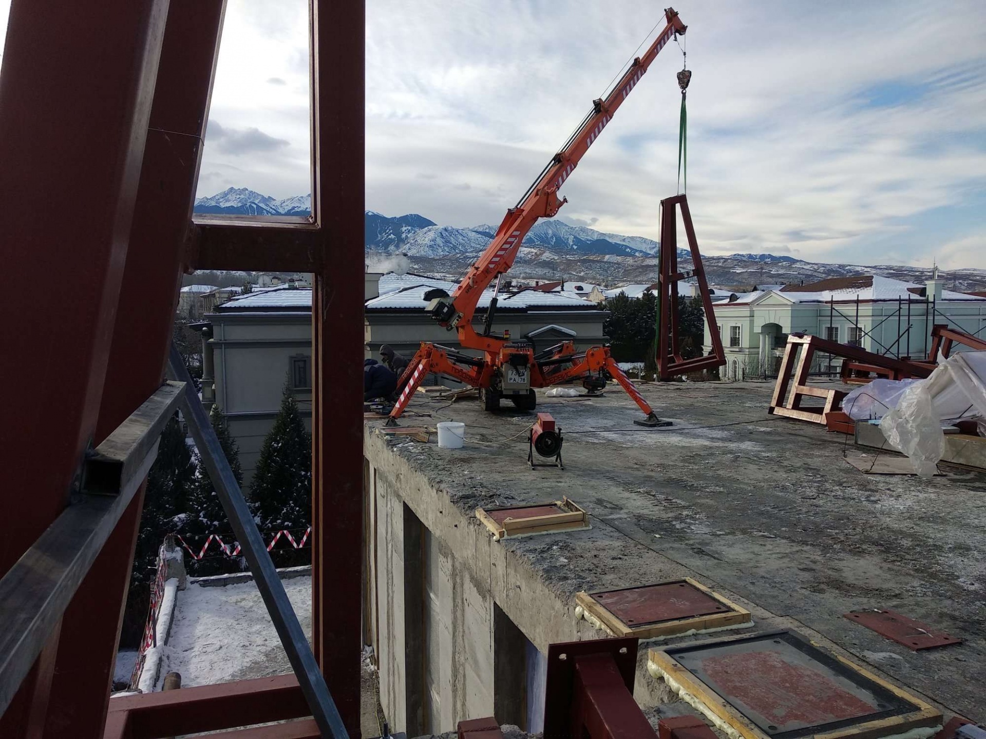 Благодаря своим компактным размерам и легкому весу, мини-кран SPD360 осуществлял монтаж металлических конструкций весом более 700 кг прямо с перекрытия. К тому же, стоит отметить, что конструкция мини-кранов обеспечивает им отличную проходимость в узких проемах, как в сложенном, так и в рабочем состоянии.