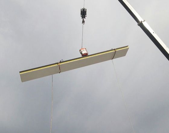 Оборудование требовалось для монтажа труднодоступных участков на краю крыши. Вакуумные захваты выполнили монтаж кровельных панелей всего за один день.