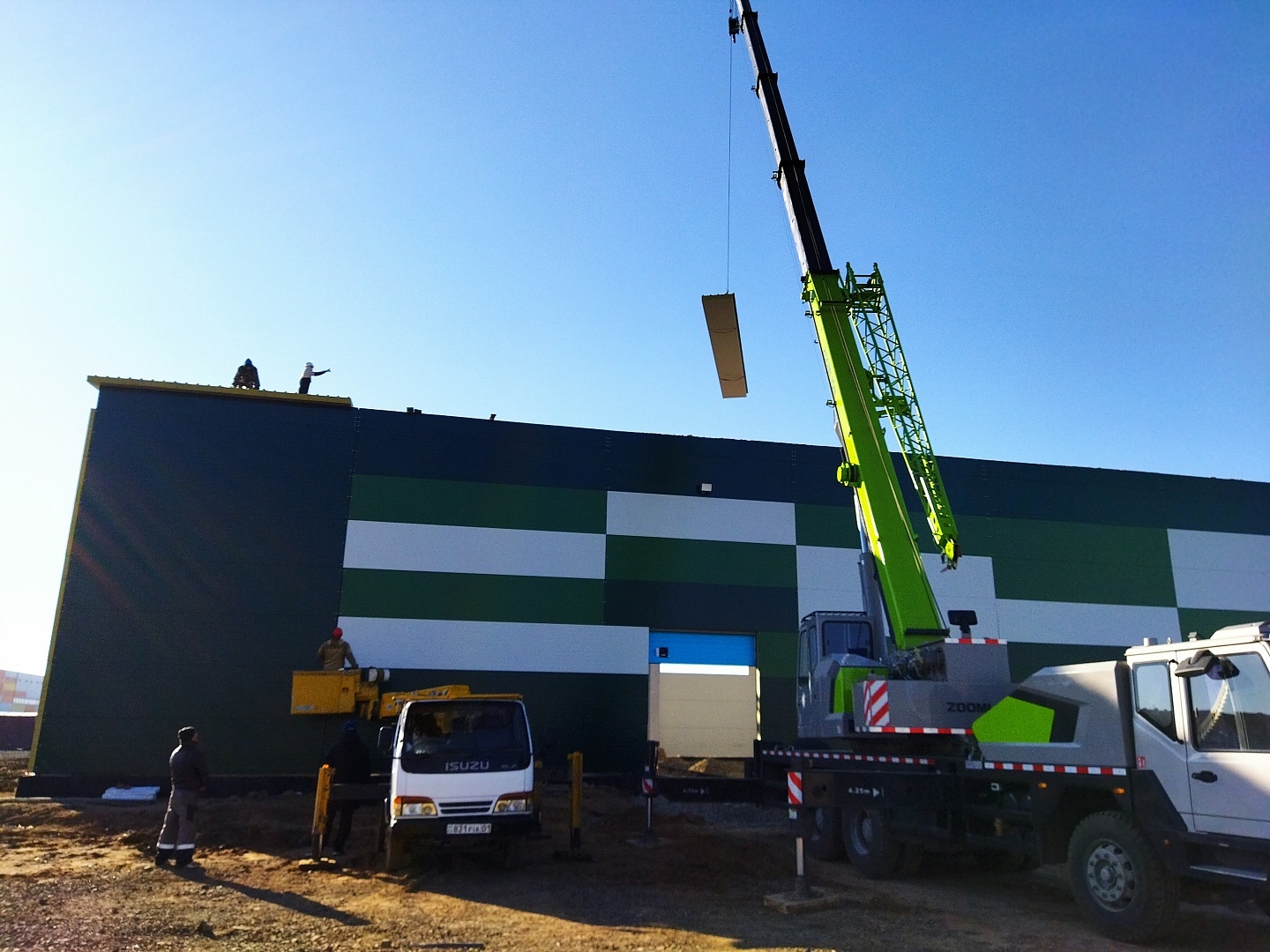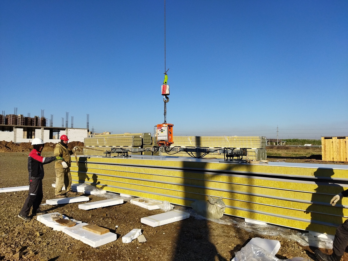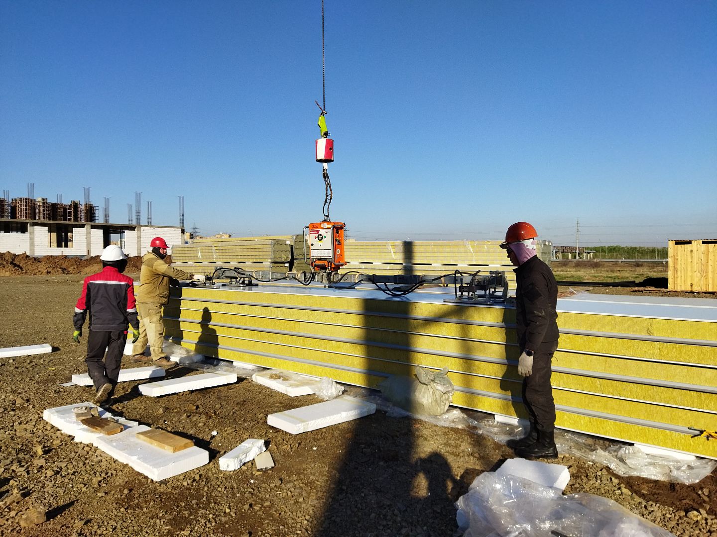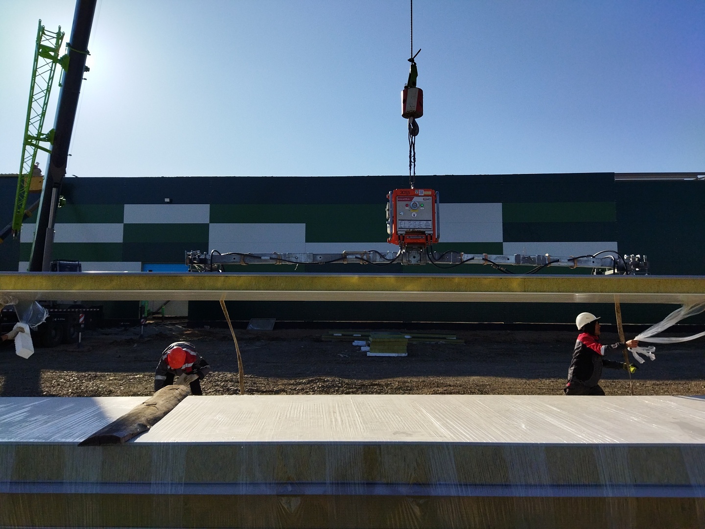 Сооружения из сэндвич-панелей настолько универсальны, что позволяют строить не только склады, птицефабрики, но и целые производства. Так, при строительстве кровли цеха по производству бетонных изделий использовали профессиональное вакуумное оборудование Arlifter SP-4, собственного производства компании Арлифт.