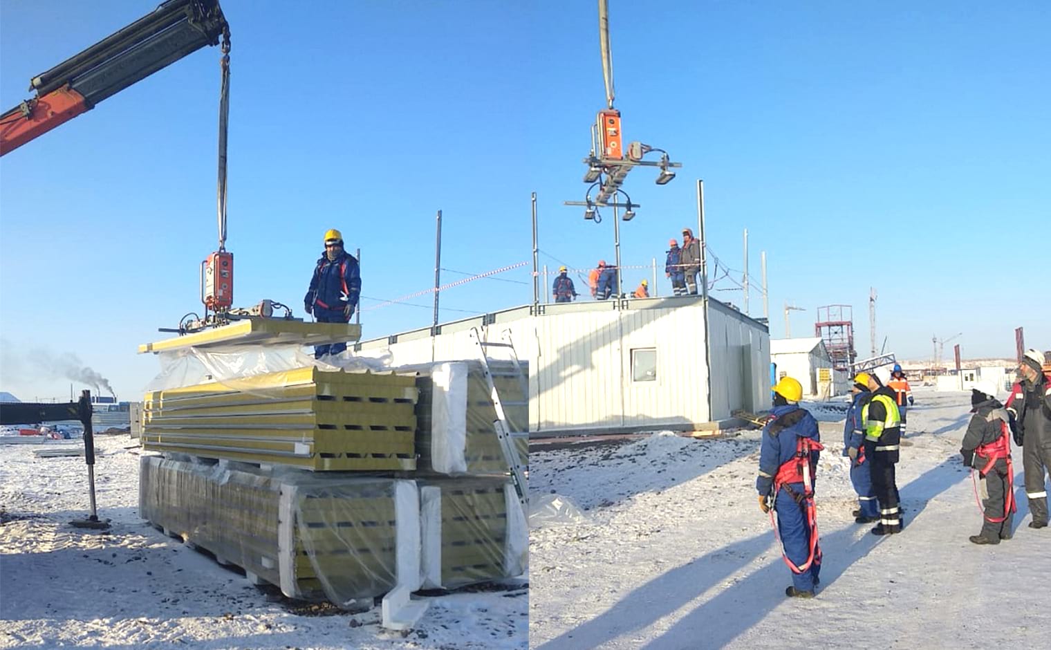 В рамках строительства Горно-обогатительного комбината в посёлке Жарем в Казахстане проводился монтаж кровельных панелей длиной до 8 метров и стеновых сэндвич-панелей длиной до 7,3 метров весом до 200 килограммов с помощью вакуумного захвата ARLIFTER SP-4.