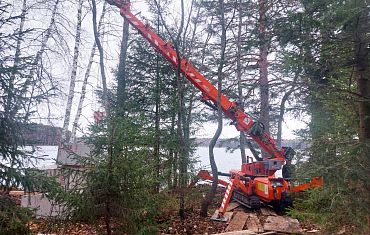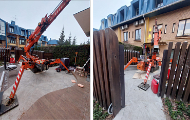 Мини-кран обычно предназначен для подъема и опускания грузов. Но на этом объекте наша техника справилась с нестандартными задачами.