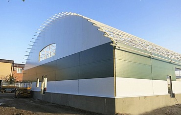 Монтаж сэндвич-панелей. Строительство футбольного манежа в городе Тимашевск (Краснодарский край)