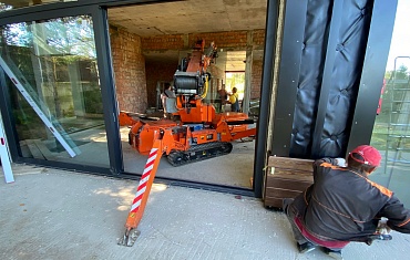 Наши объекты - Установка фасадного остекления с помощью мини-крана SPX 527 и вакуумного захвата ARLIFTER GS-350