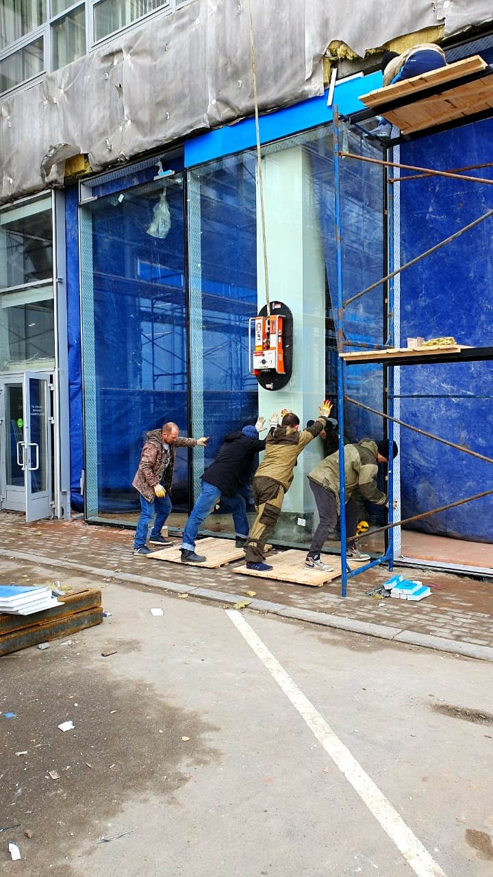 Остекление нового современного автосалона Range Rover в городе Казани обошлось не без приключений. Прежде чем обратиться в компанию Арлифт, строители использовали свое оборудование. Но вакуумный захват, который был у них в наличии, не справился со своей задачей, так как монтаж проходил в дождливую погоду. Стекло, вес которого составляет 800 кг, сорвалось и разбилось.