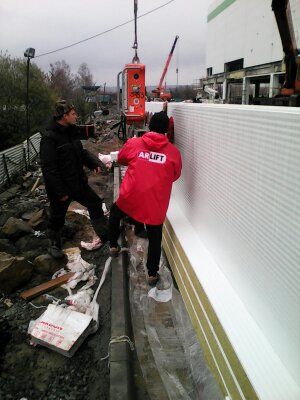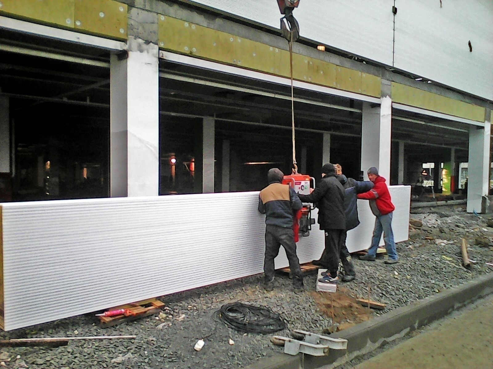 Монтаж сэндвич-панелей 8 метров вакуумным захватом ARLIFTER SP-4.