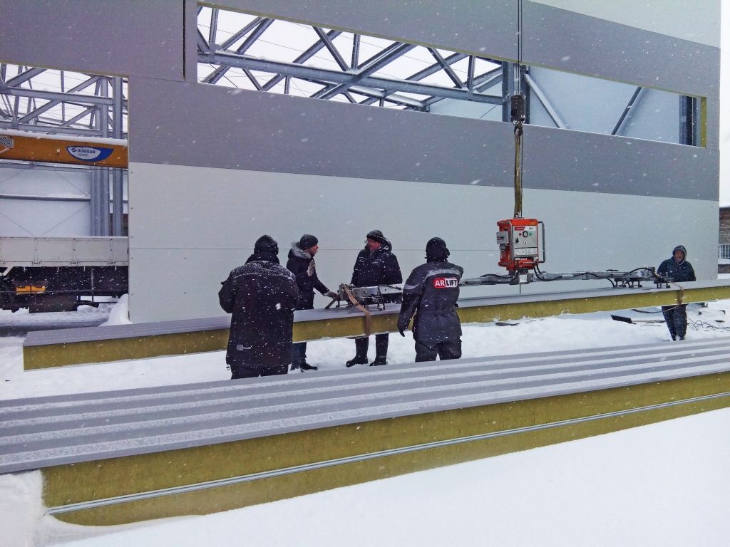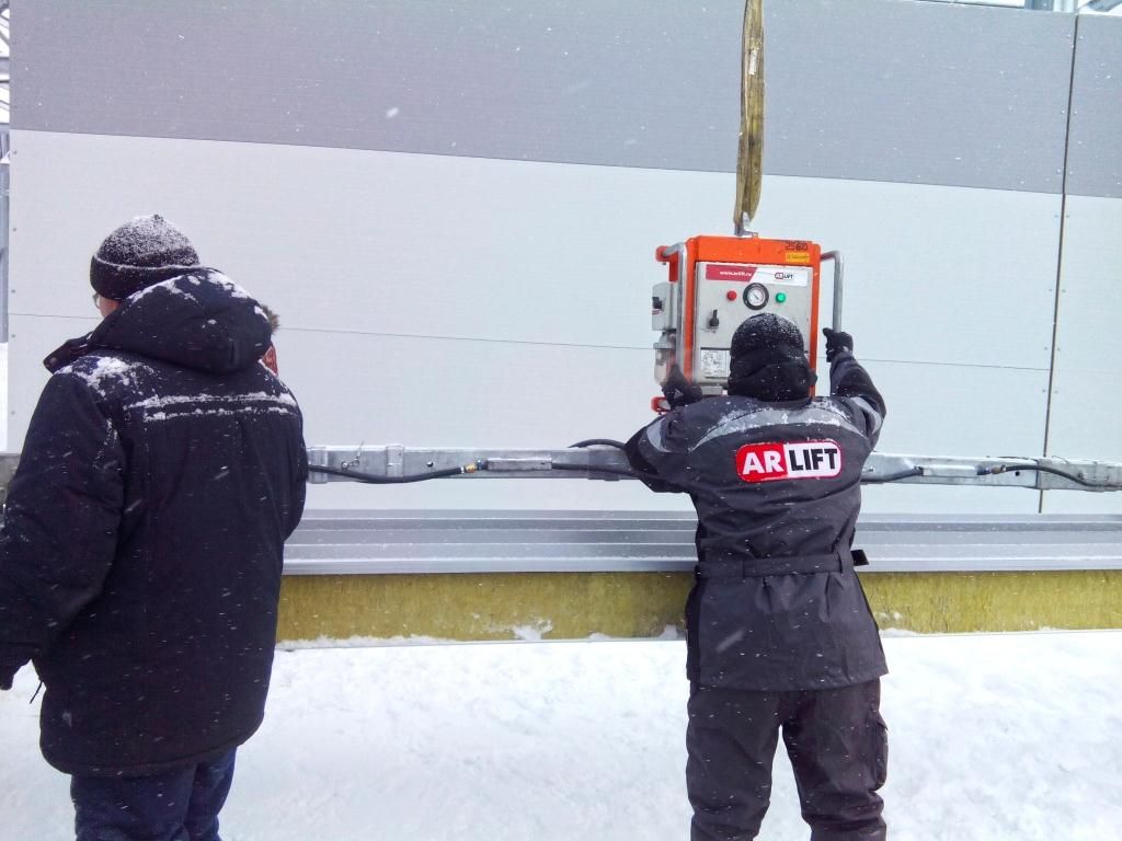 Монтаж вакуумным захватом для сэндвич-панелей ARLIFTER SP4/SPD4 (Стена + Кровля) в комплектации "Кровля".