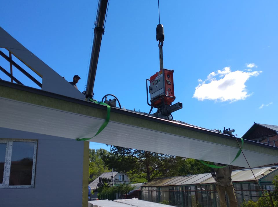 Таким принципом руководствовались ребята, когда приняли решение использовать для монтажа сэндвич-панелей технику Арлифт, ведь вакуумный захват Arlifter SP-4 идеально подходит для монтажа кровельных панелей длиной до 26 метров. Arlifter SP-4 — оборудование, которое может существенно ускорить весь процесс строительства. Поэтому стандартные 6-ти метровые панели компании смонтировали в рекордные сроки.