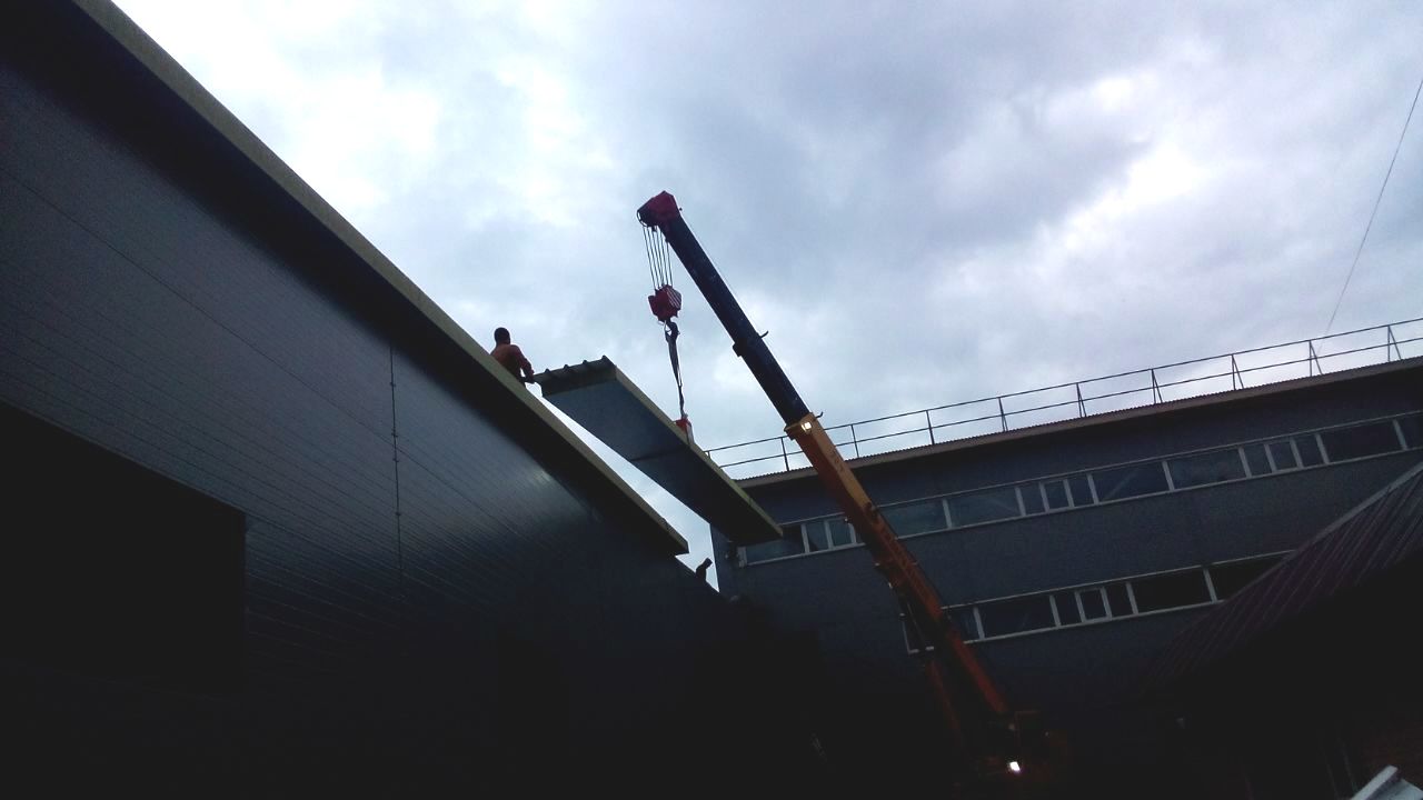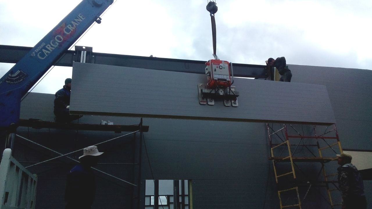 Вакуумный захват ARLIFTER SP-4 отлично справился с работой по монтажу кровельных и стеновых панелей на складском помещении города Новосибирск.