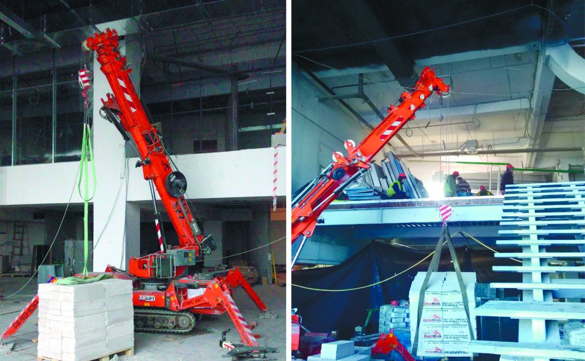 Компанией ООО «Еврогруп», производившей монтаж, было решено оставить мини-кран компании АРЛИФТ для подъёма паллетов с газобетоном, плиткой, клеем и шпаклевкой со второго на третий этаж, так как это отнимало слишком много времени, а сроки были сжаты.