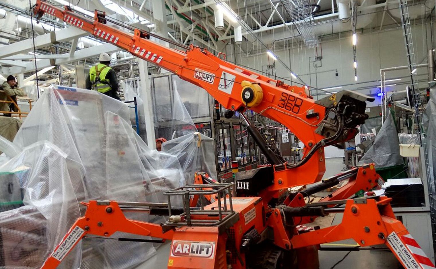 Благодаря электромотору и резиновым гусеницам мини-краном Jekko SPD360 удалось выполнить монтаж металлоконструкций в «чистом» помещении, наполненным аппаратами для производства, не задев оборудования и не нанеся вреда выхлопными газами.