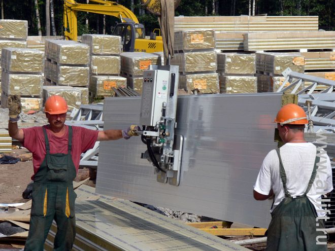 Гипермаркет «Карусель» на ст. м. Пионерская - Санкт-Петербург - Горизонтальный монтаж стеновых сэндвич-панелей - Clad Boy 2
