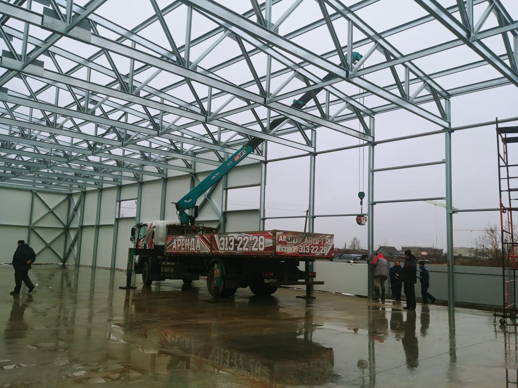 Наши объекты - Строительство ангара с помощью техники Арлифт