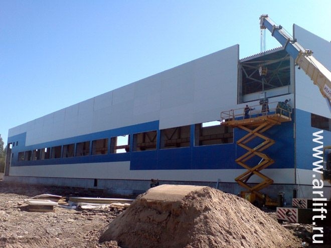 Наши объекты - Производственный склад - Горизонтальный монтаж стеновых сэндвич-панелей