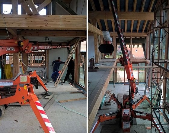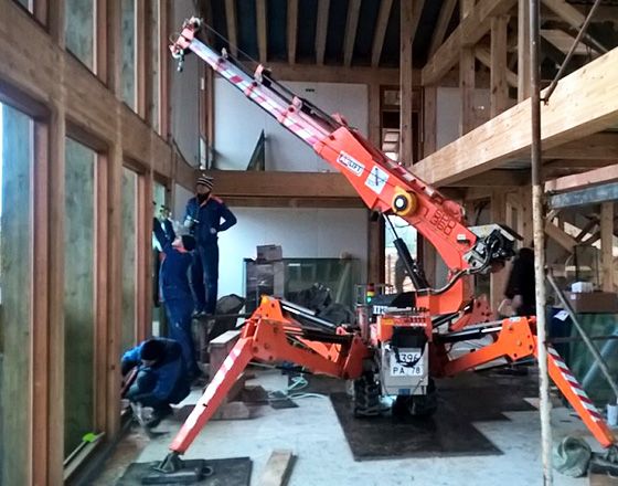 Для выполнения работ была применена техника Арлифт: мини-кран JEKKO SPD 360 и вакуумный захват ARLIFTER GS-500.