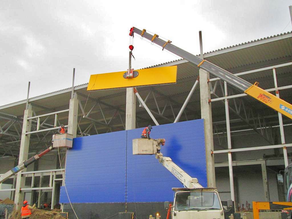 Горизонтальный монтаж сэндвич-панелей 6 метров.
