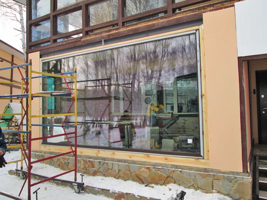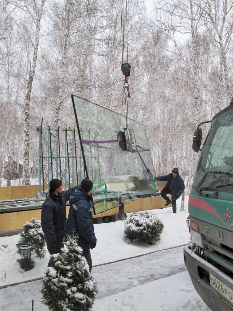 Монтаж стекла 4,8 х 2,5 метров (510 кг).