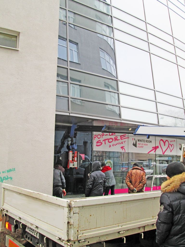 Екатеринбург, ТРЦ "Гринго". Монтаж витринного стекла 2,5 х 1,5 (250 кг).