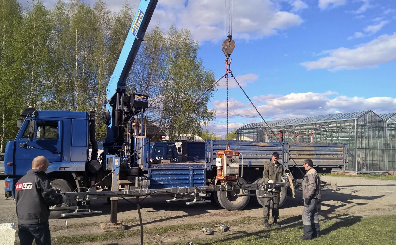 Под требуемые работы было решено использовать вакуумный захват ARLIFTER SP-4 с дополнительным комплектом удлинителей и присосок, проходными траверсами и, в качестве средств строповки - цепи.
