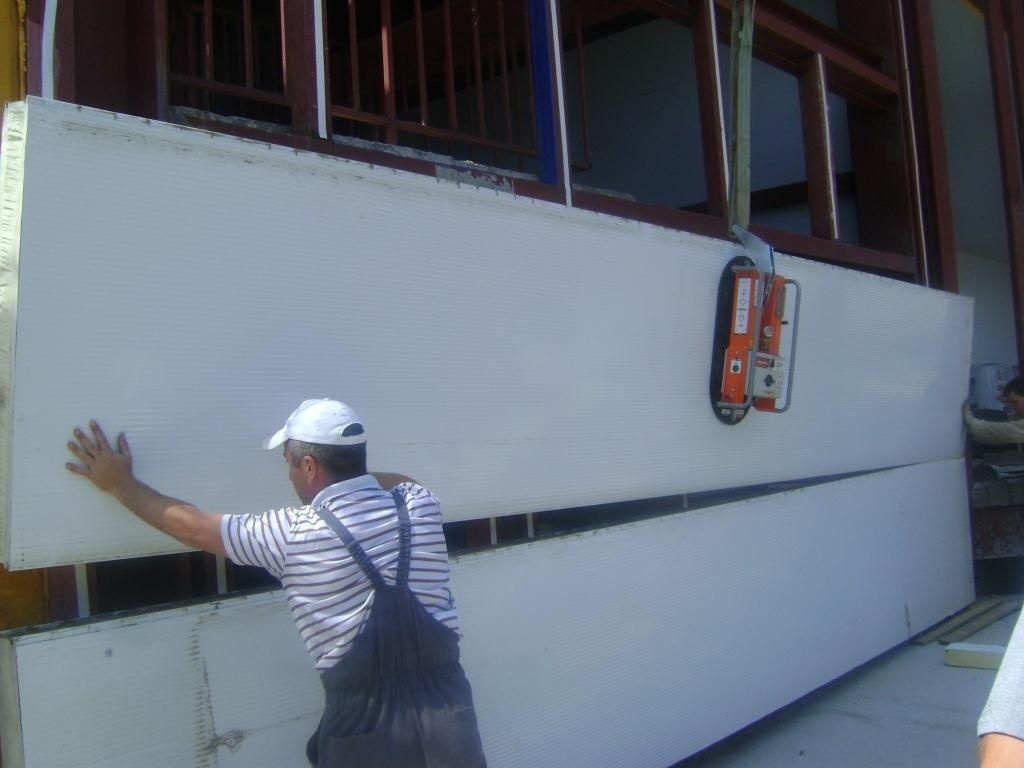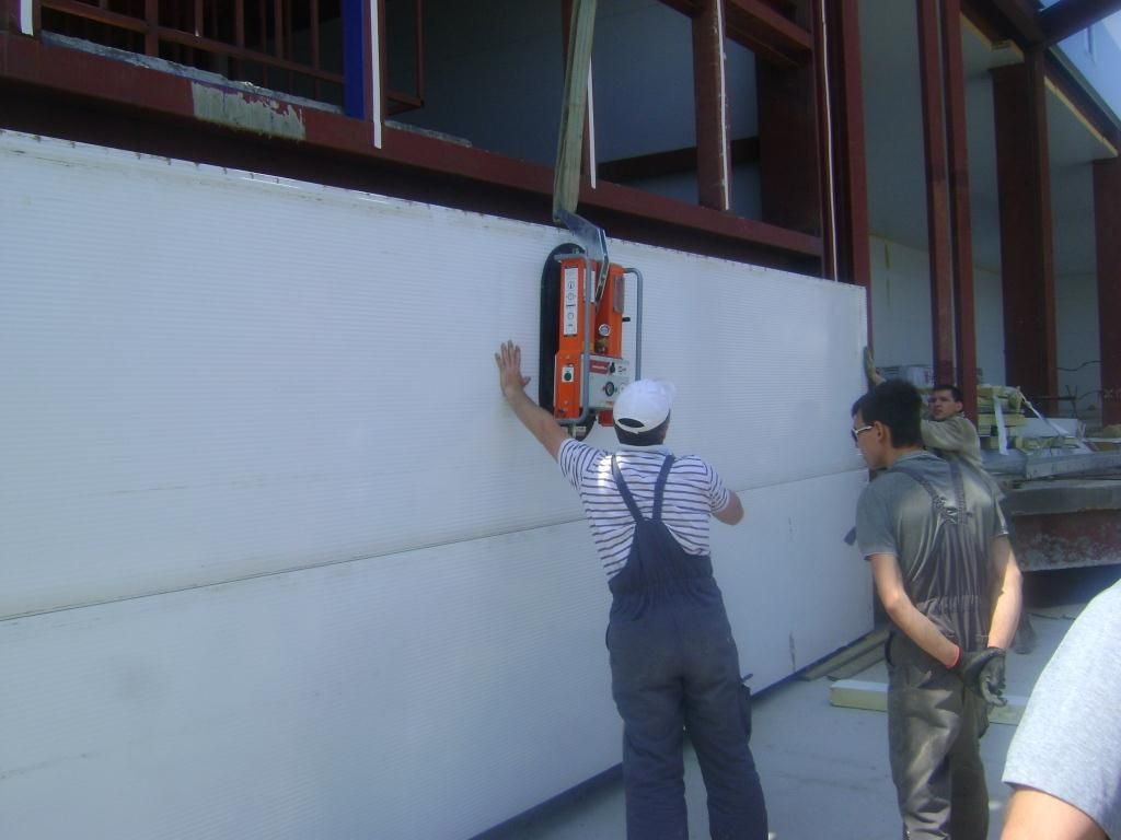 Горизонтальный монтаж 6-ти метровых сэндвич панелей с помощью ARLIFTER GS-500 с кронштейном развесовки.