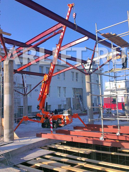 Монтаж опалубки и металлоконструкций с помощью мини-крана Jekko SPD 360 СDH.