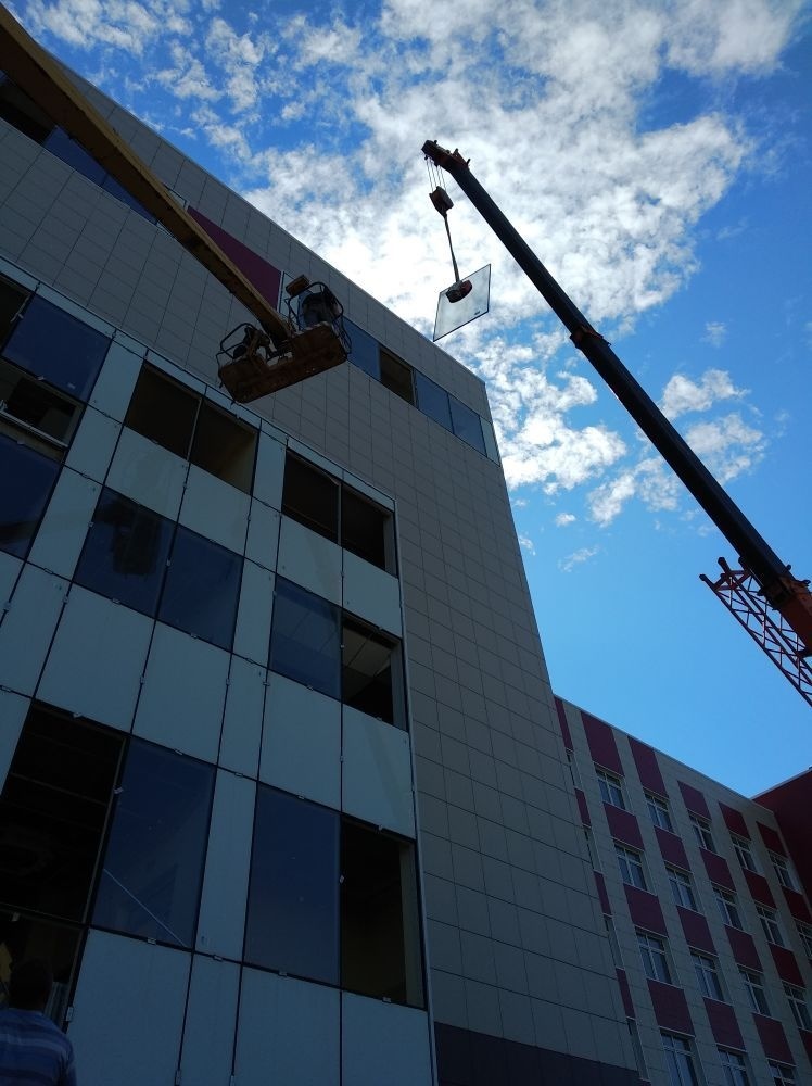 На объекте использовались стёкла весом 250 кг, что не составило никакого труда для монтажа вакуумным захватом ARLIFTER GS-350.