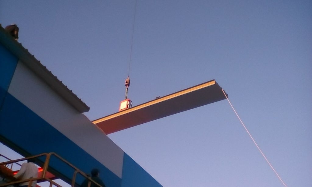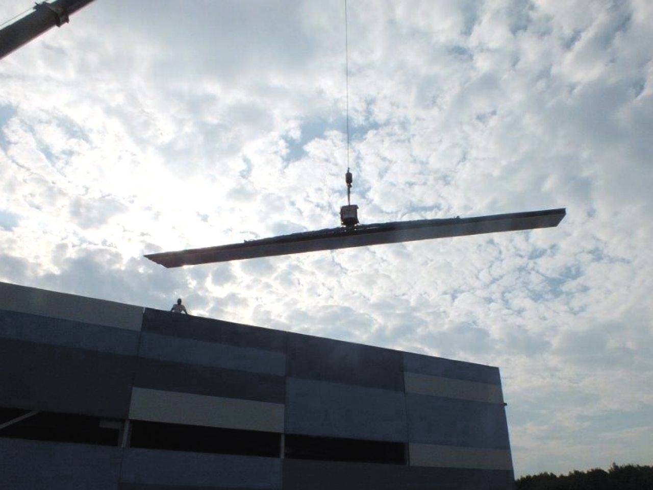 Для решения задачи был применен вакуумный захват ARLIFTER SP-4 для монтажа стеновых и кровельных панелей длиной до 26 метров.